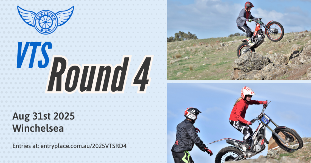 The 2025 Victorian Trial Series (VTS) heads to Winchelsea for Round 4 on Sunday 31st August 2025, proudly hosted by Oakleigh Motorcycle Club.
