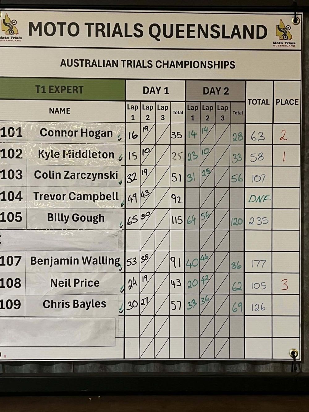 Day 2 Results - 2025 Hell Team TRS & Integrated Products Australian Trial Championships